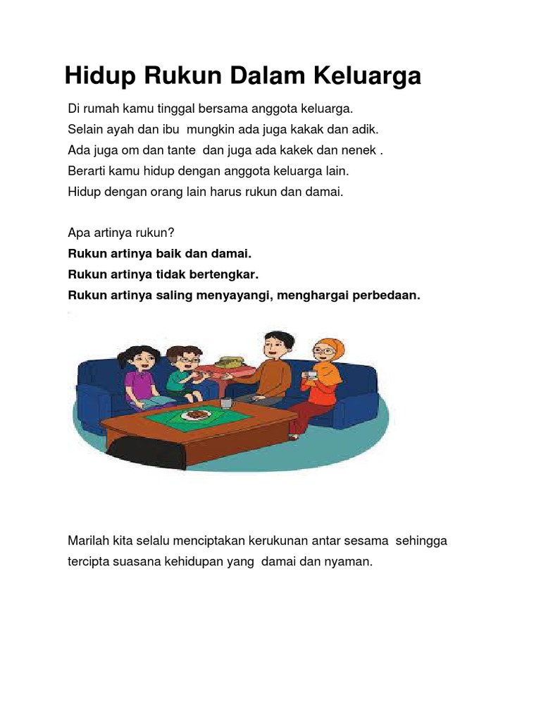 Keluarga Yang Rukun Dan Penuh Keterbukaan from www.jawaban.com Karena dalam keluarga akan mendapatkan kebagian. Psikologis keluarga pun akan sangat membantu. Pertengkaran yang terjadi di dalam sebuah keluarga karena adanya unsur keegoisan dan tidak mau mengalah satu sama lain. Adapun beberapa macam kerukunan hidup, antara lain. Apabila kerukunan dalam keluarga juga masyarakat sudah tercipta tentunya akan membuat satu sama lainnya menghargai perbedaan tersebut. Kehidupan dalam keluarga yang dikondisikan dengan nuansa penuh kasih sayang, akan menjadikan kehidupan anak merasa tenteram dan merasa terlindungi. Di kota palangka raya, disebabkan oleh tiga faktor, yaitu adanya filosofi huma betang, adanya rasa kekerabatan, dan. Menjalani hidup, manusia sendiri sebagai makhluk sosial selalu memerlukan bantuan dari orang.